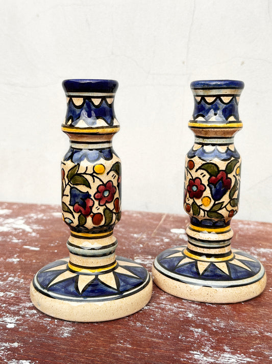 Vintage Italian Glazed Ceramic Candlestick Holders (1950s)