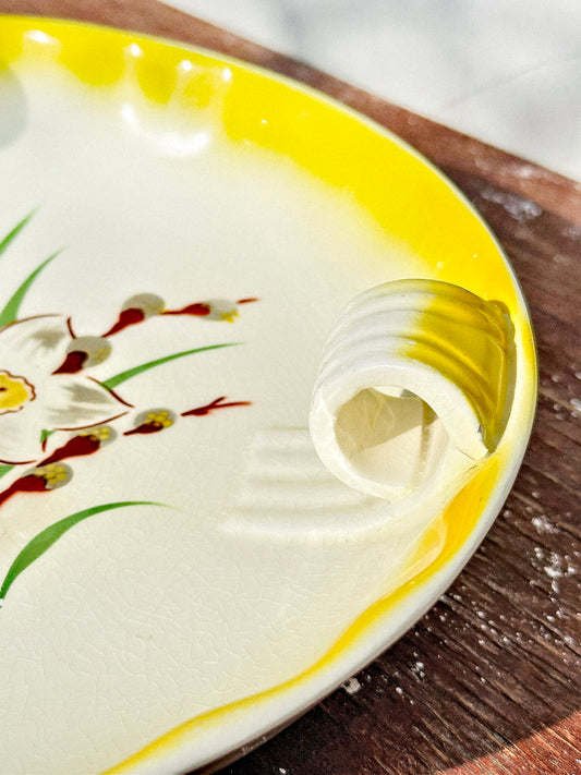 Super Rare French Antique XIX century Faïance Small Platter with Triple Inner Handles (France, 1890s)