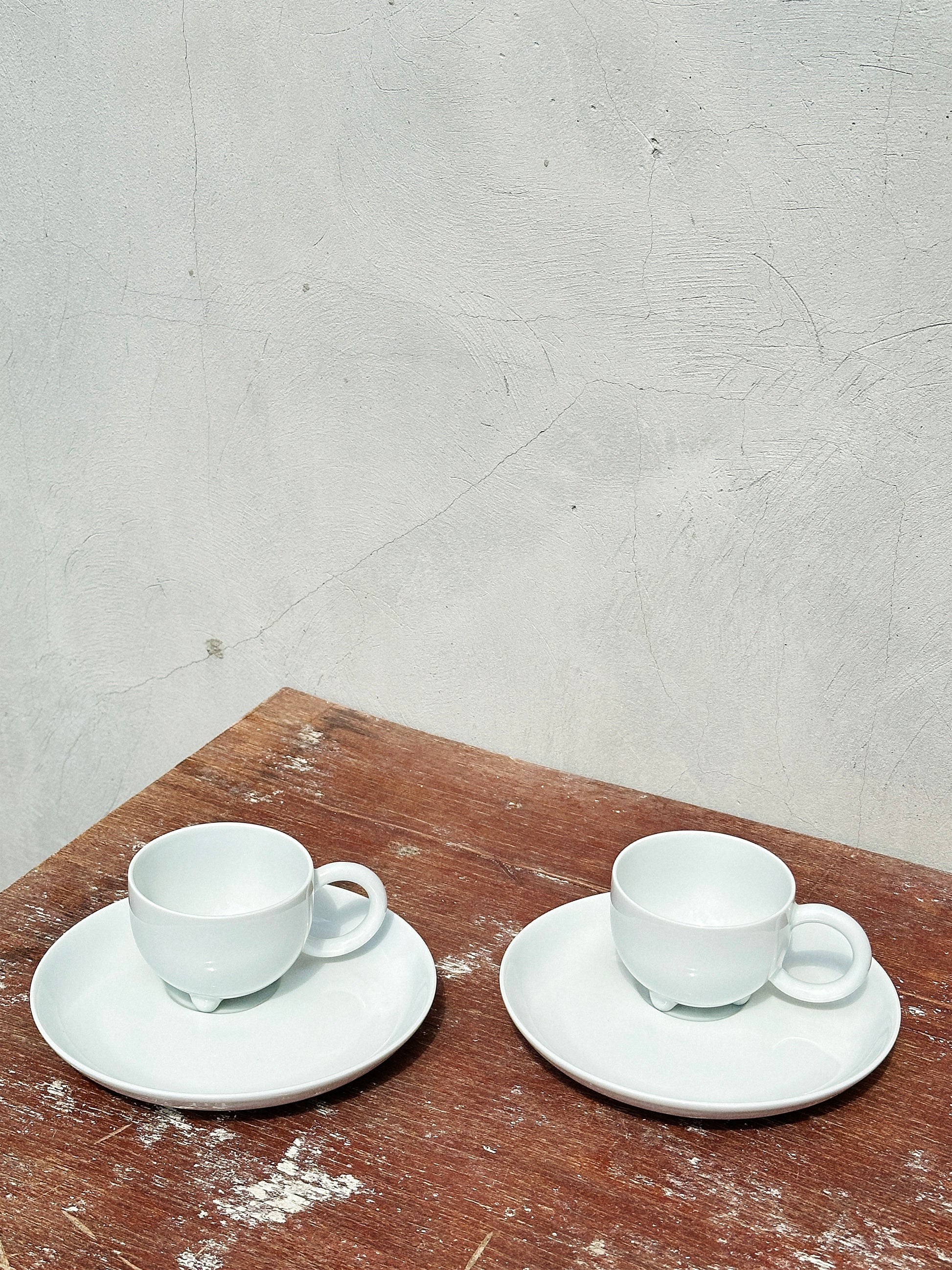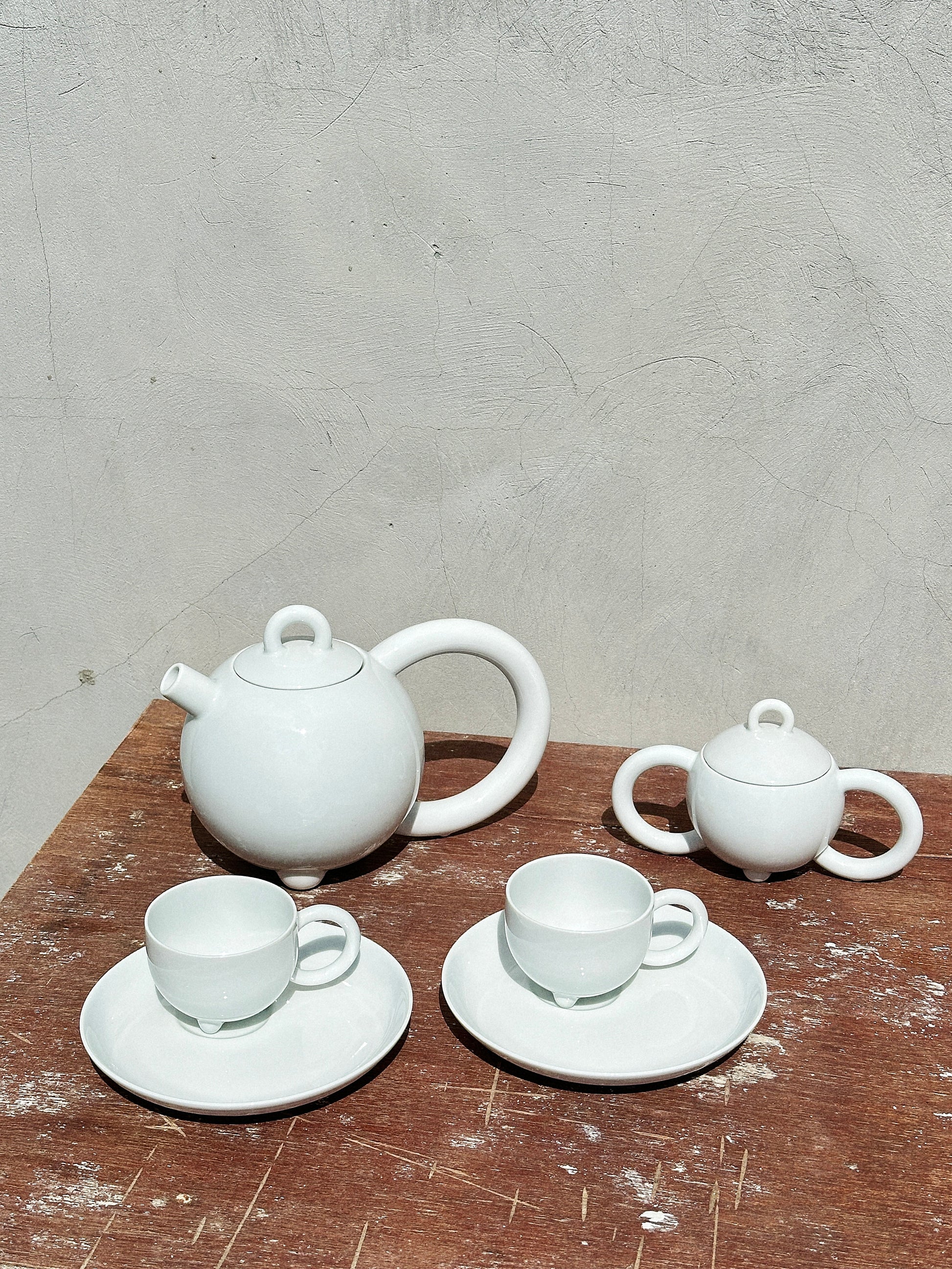 From time to time we stumble upon some great pieces like this Arzberg post-modern white porcelain set designed by Matteo Thun, part of the Fantasia Mocca Collection. Produced in 1985 during the heights of Memphis Group, this set goes beyond its functionality per se and it is certainly a statement of an age that shaped world design.