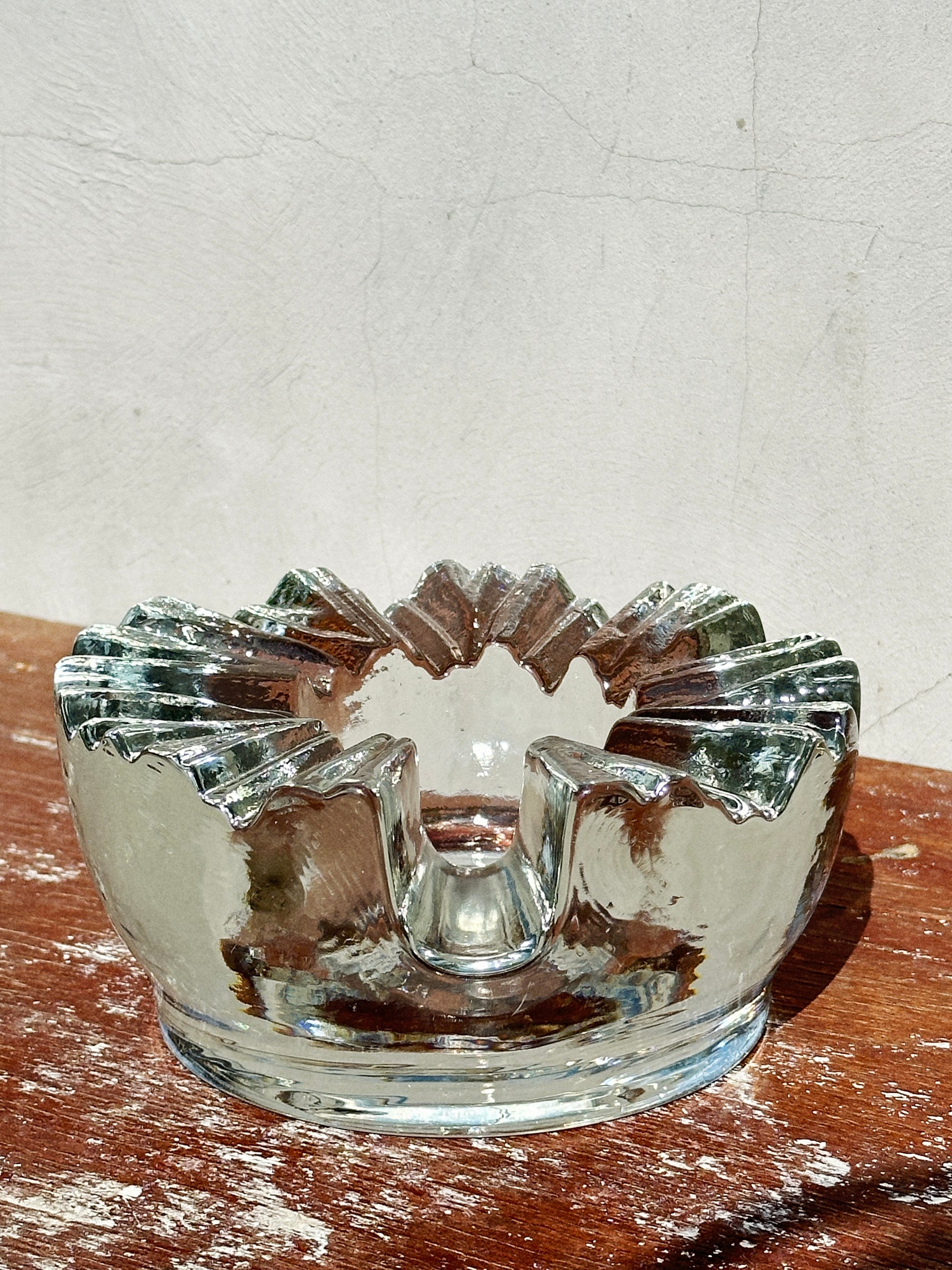 Rare Mid-Century Peill & Putzler Heavy Ice Glass Ashtray/Candleholder (1970s, West Germany)