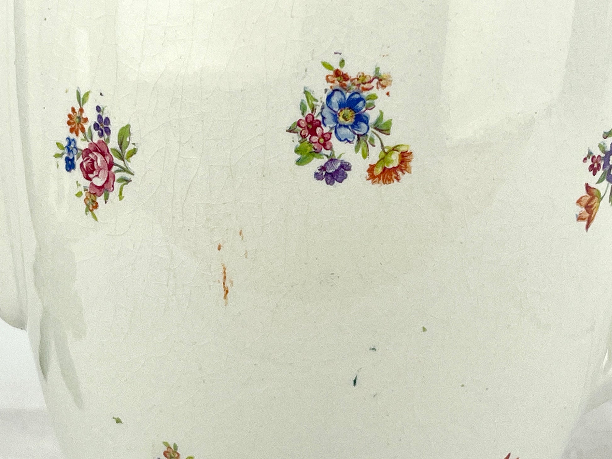 Condition — Good — This vintage/antique piece is in near original condition. It shows traces of use, small marks on the body, minor glaze imperfections, micro chips on the bottom.